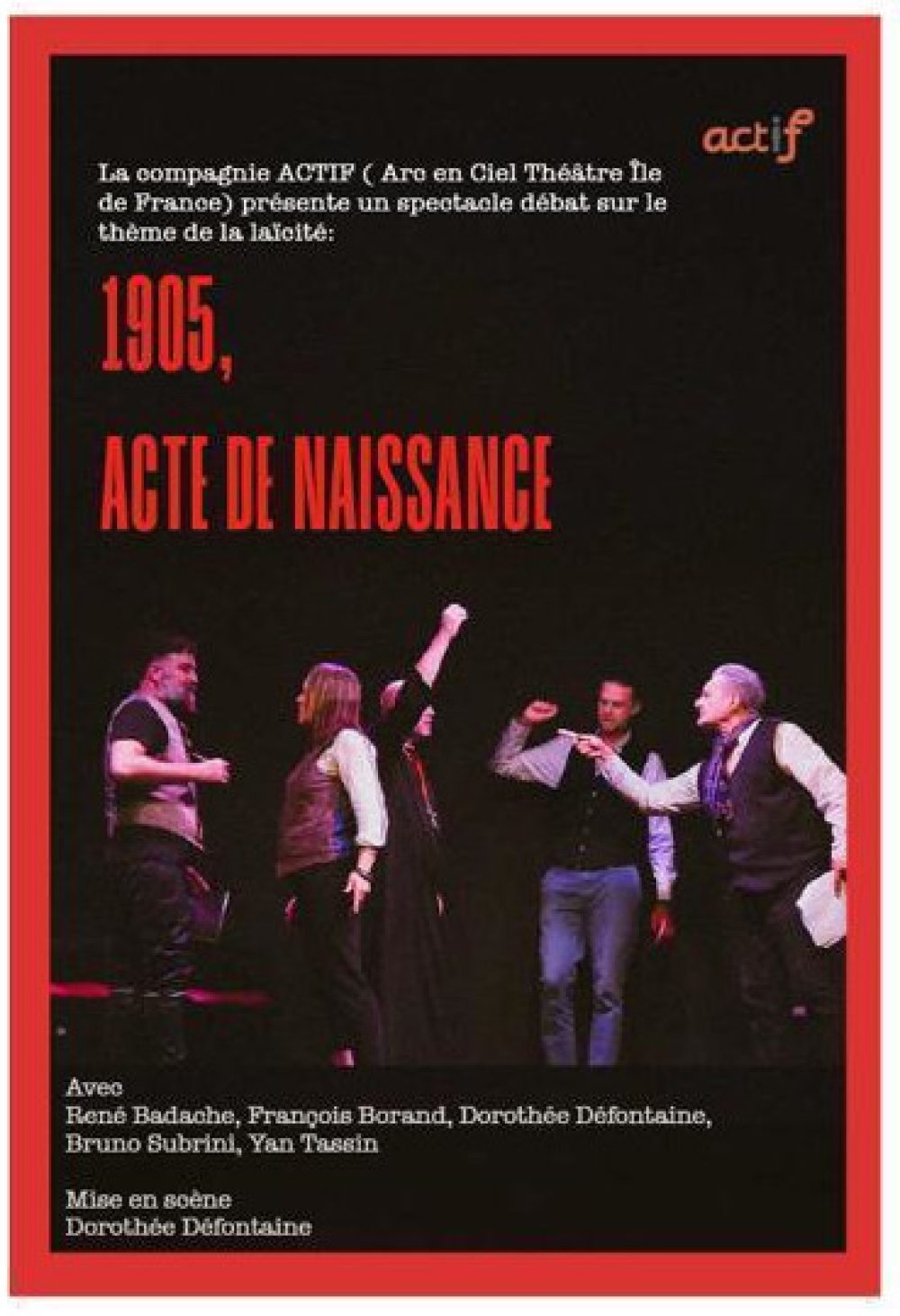 Mis en scène par Dorothée Defontaine et avec René Badache, Michèle Bassereau, Dorothée Defontaine, Nordine Salhi, Bruno Subrini, Yan Tassin.