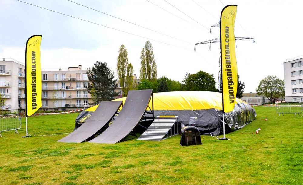 Moment festif avec prestation d’un freestyle airbag, BMX, VTT