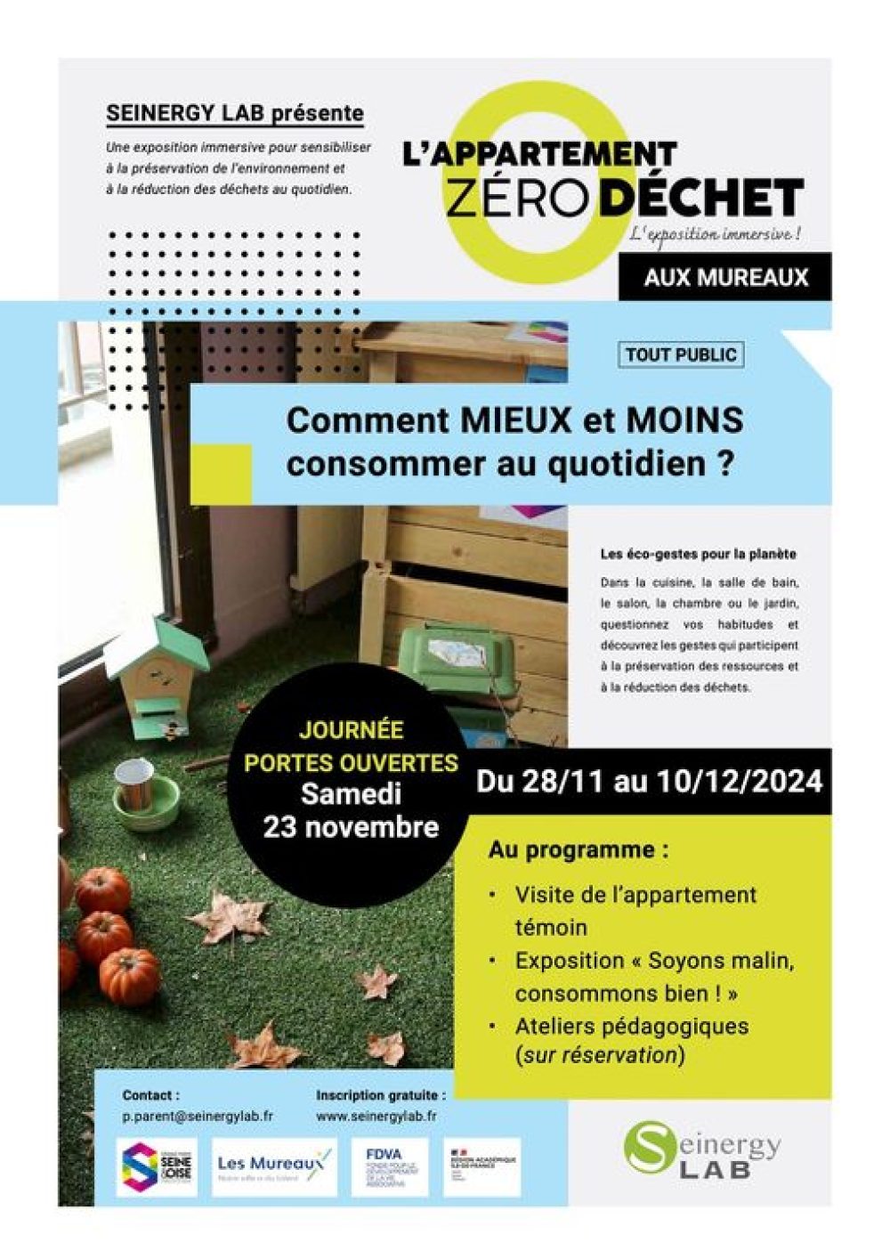 Seinergy LAB vous invite dans l’appartement pédagogique de 100 m² pour découvrir les bonnes pratiques en matière de consommation responsable, et de gestion et réduction des déchets ![]()