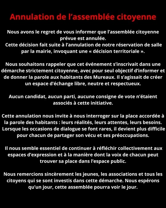 L’objectif ? Que vous repartiez avec les idées claires, la décision de voter (Quel que soit le candidat) et l’envie d’agir pour faire des Mureaux la ville que nous aimons.