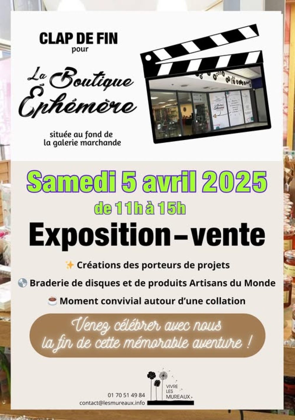 #LesMureaux #BoutiqueĂphĂ©mĂšre #ClapDeFin #ĂvĂ©nement #Shopping #Artisanat #CommerceLocal