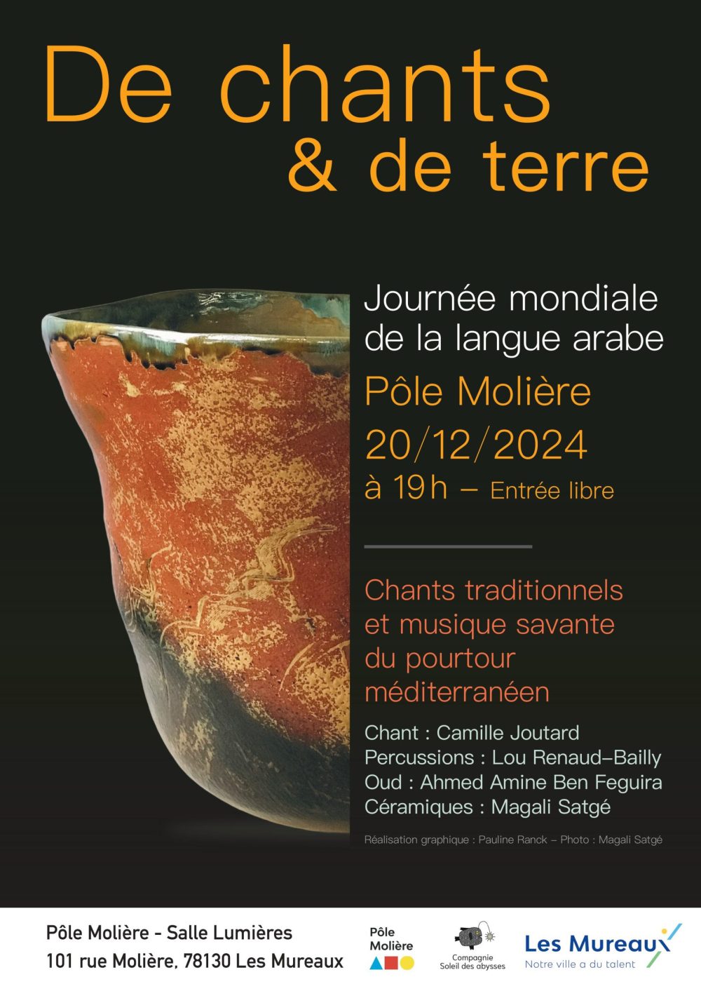 Pour célébrer la journée mondiale de la langue arabe, un concert exceptionnel de chants & de terre sera donné au Pôle Molière le vendredi 20 décembre à 19h.
