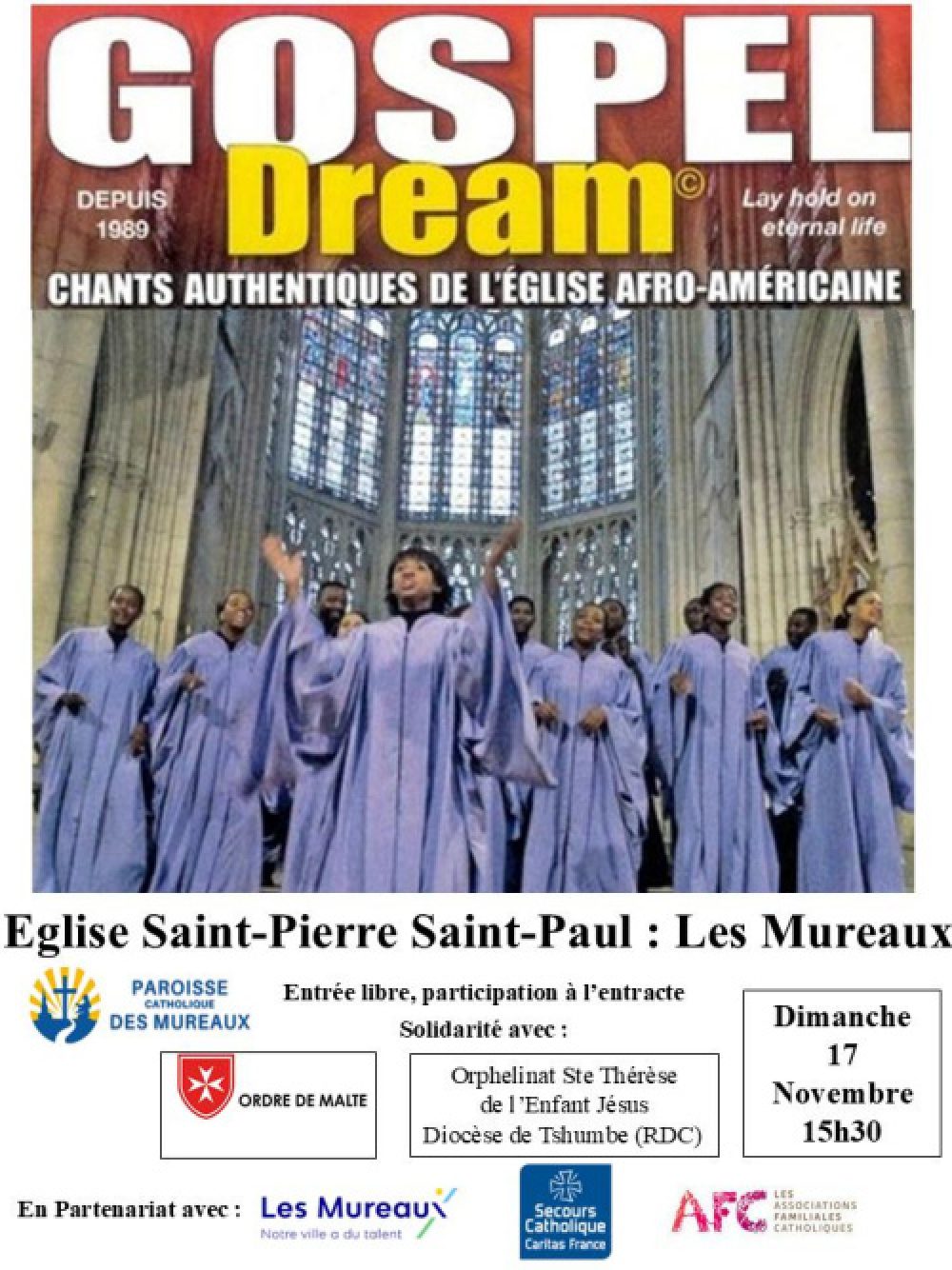 La chorale Gospel dream est un ensemble mixte et cosmopolite de chanteurs et musiciens noirs qui réunit :