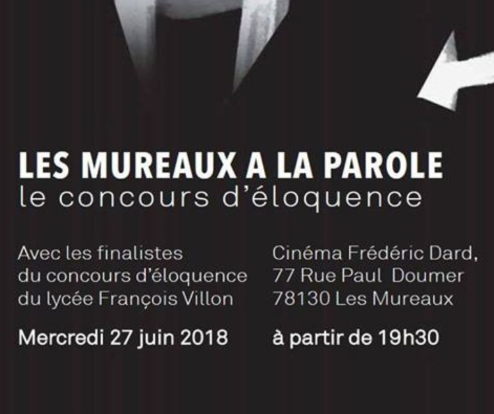 Le premier concours d’éloquence sur la ville des Mureaux organisé par l’association « Initiatives aux Mureaux » en partenariat avec la Haute École des Avocats Conseils aura lieu le 27 juin 2018 au cinéma Frédéric Dard à partir de 19h30.