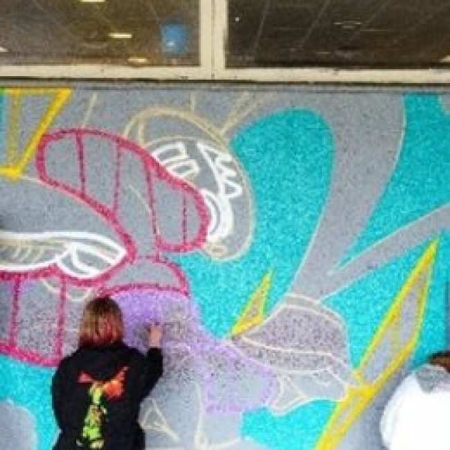 Vaper (Olivier Bioche) est graffeur professionnel depuis son plus jeune âge, il réalise des fresques murales et organise des ateliers de découverte et d’initiation au graff. Il a à cœur de transmettre son savoir et ses techniques : lettrage et la figuration demeurent ses favorites…
