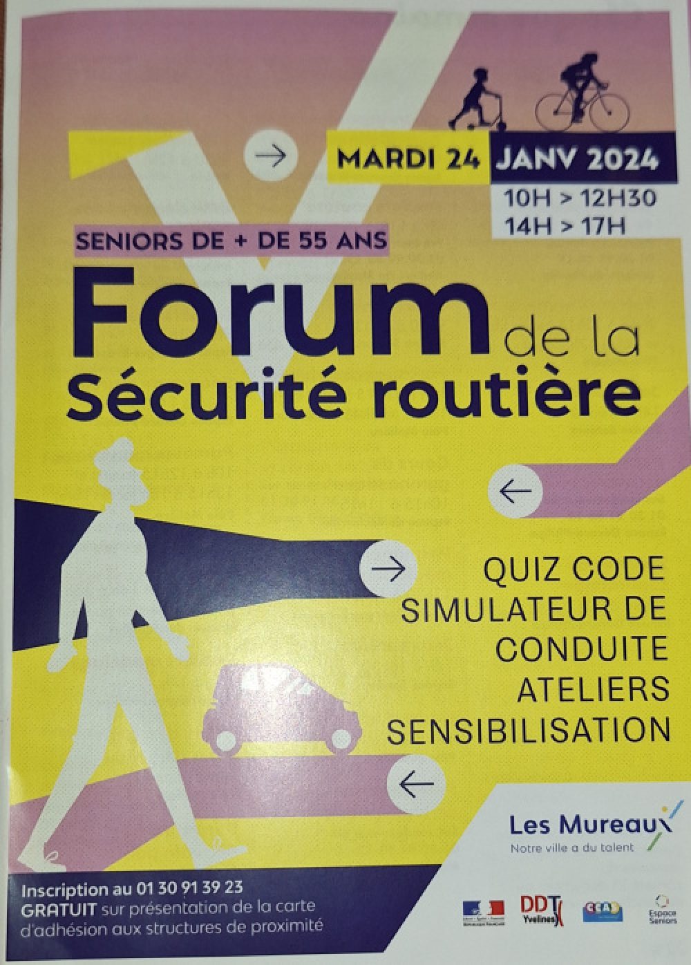 Sensibilisation des seniors de 55 ans et plus, à la sécurité routière : risques d’être piéton et rappel des règles, quiz du code de la route, simulateur de conduite, ateliers de conduite à risque.