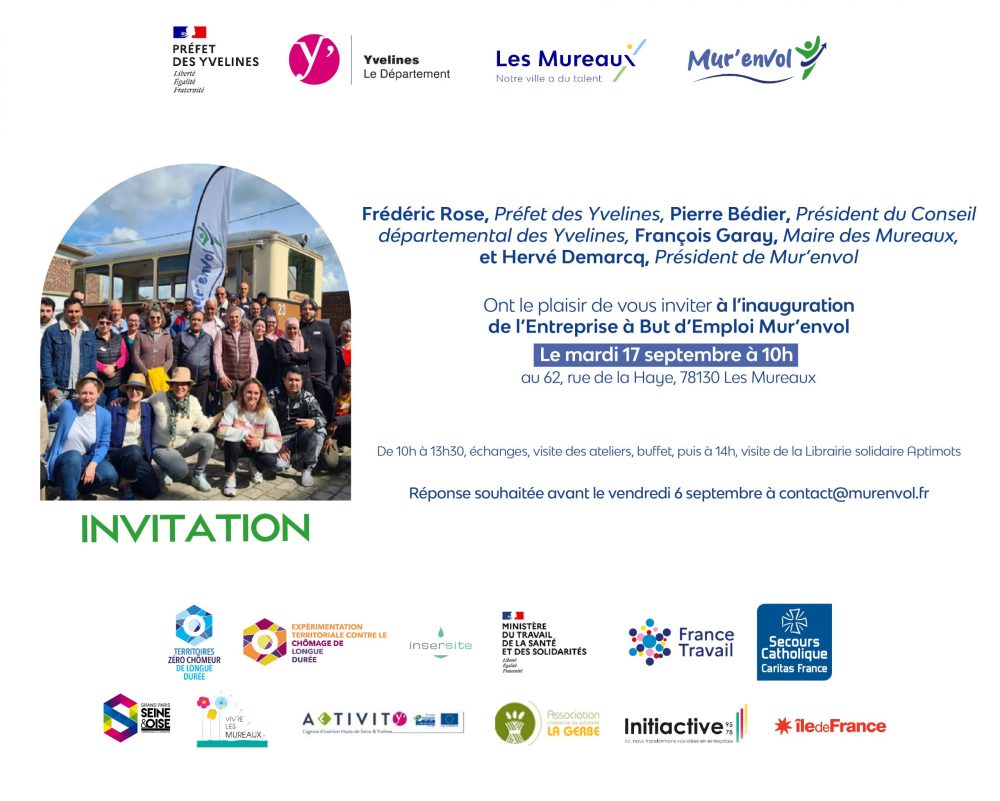 l’inauguration de la société Mur’envol aura lieu le 17 septembre 2024. Elle débutera à 10h au 62 rue de la Haye aux Mureaux. Nous rejoindrons la librairie (84 boulevard Victor Hugo aux Mureaux) à 14h.