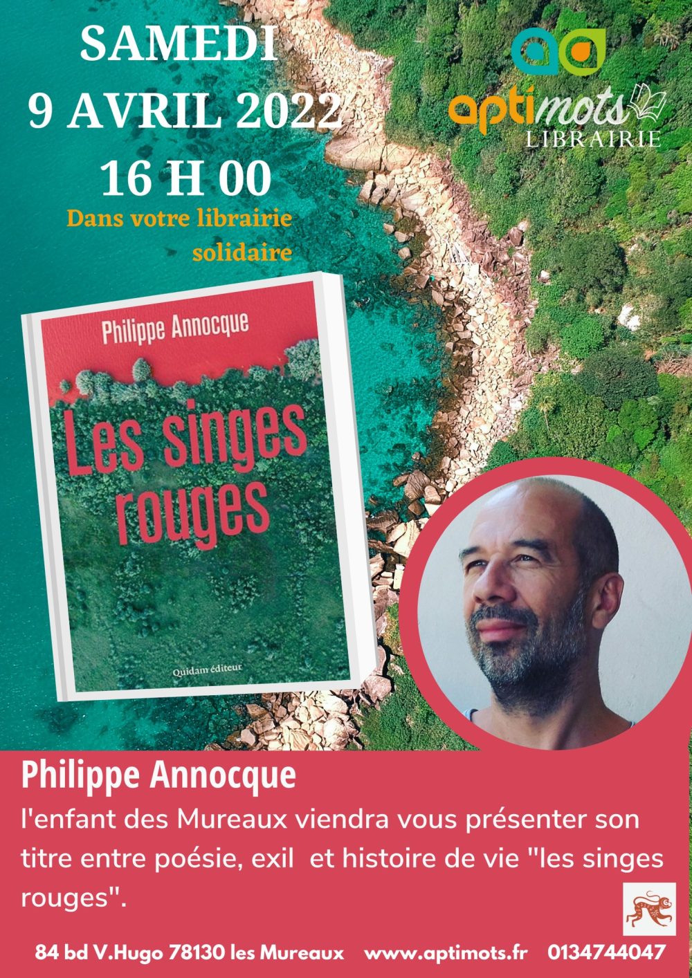 L’écrivain Philippe Annocque, l’enfant des Mureaux, viendra vous présenter son livre « Les singes rouges ».