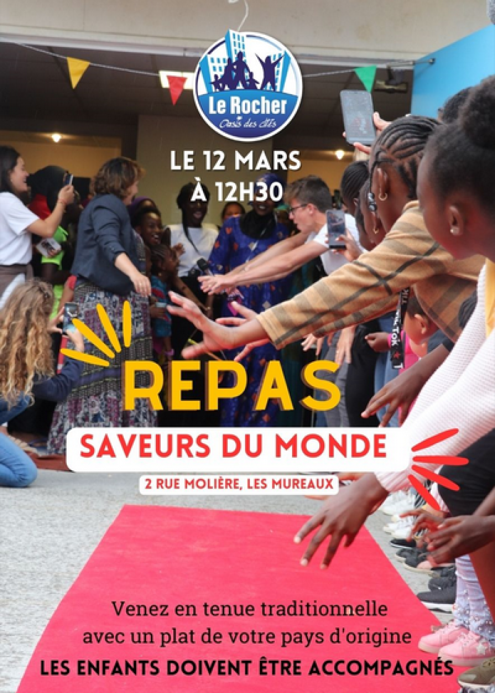 Le Rocher organise son prochain repas saveurs du monde le dimanche 12 mars prochain, Ã 12h30