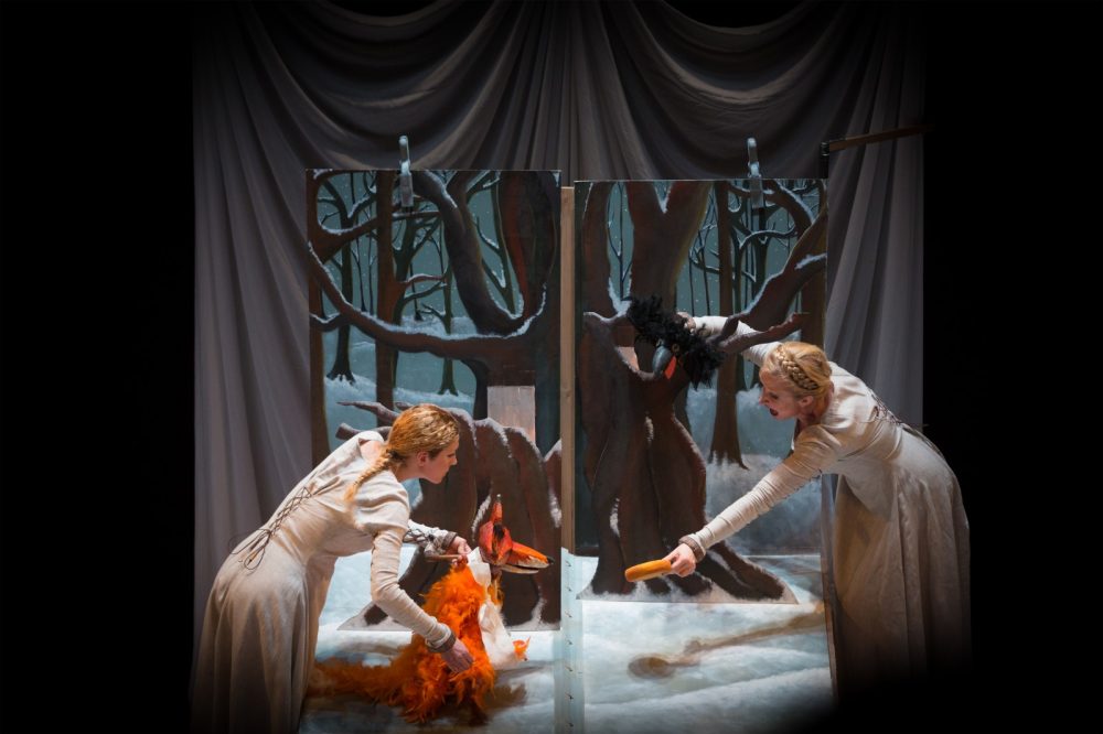 Grâce au jeu théâtral et à la marionnette, les comédiennes invitent le spectateur à la lecture d’un grand livre pop-up. Les dessins, les couleurs et la composition des décors peints racontent l’histoire d’un temps ancien où Renart faisait rire, mais également réfléchir sur les défauts d’une société dénoncée par les auteurs…