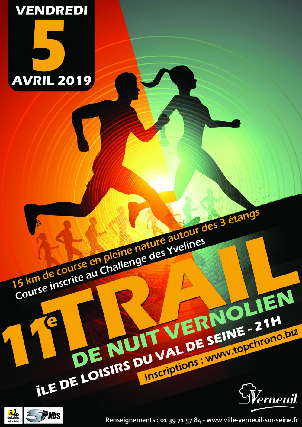 à l’île de loisirs de Verneuil sur Seine le Vendredi 05 Avril 2019 à 21h00 avec au programme un 15 km en auto-suffisance autour des 3 étangs. Parcours sur sentiers et chemins forestiers.