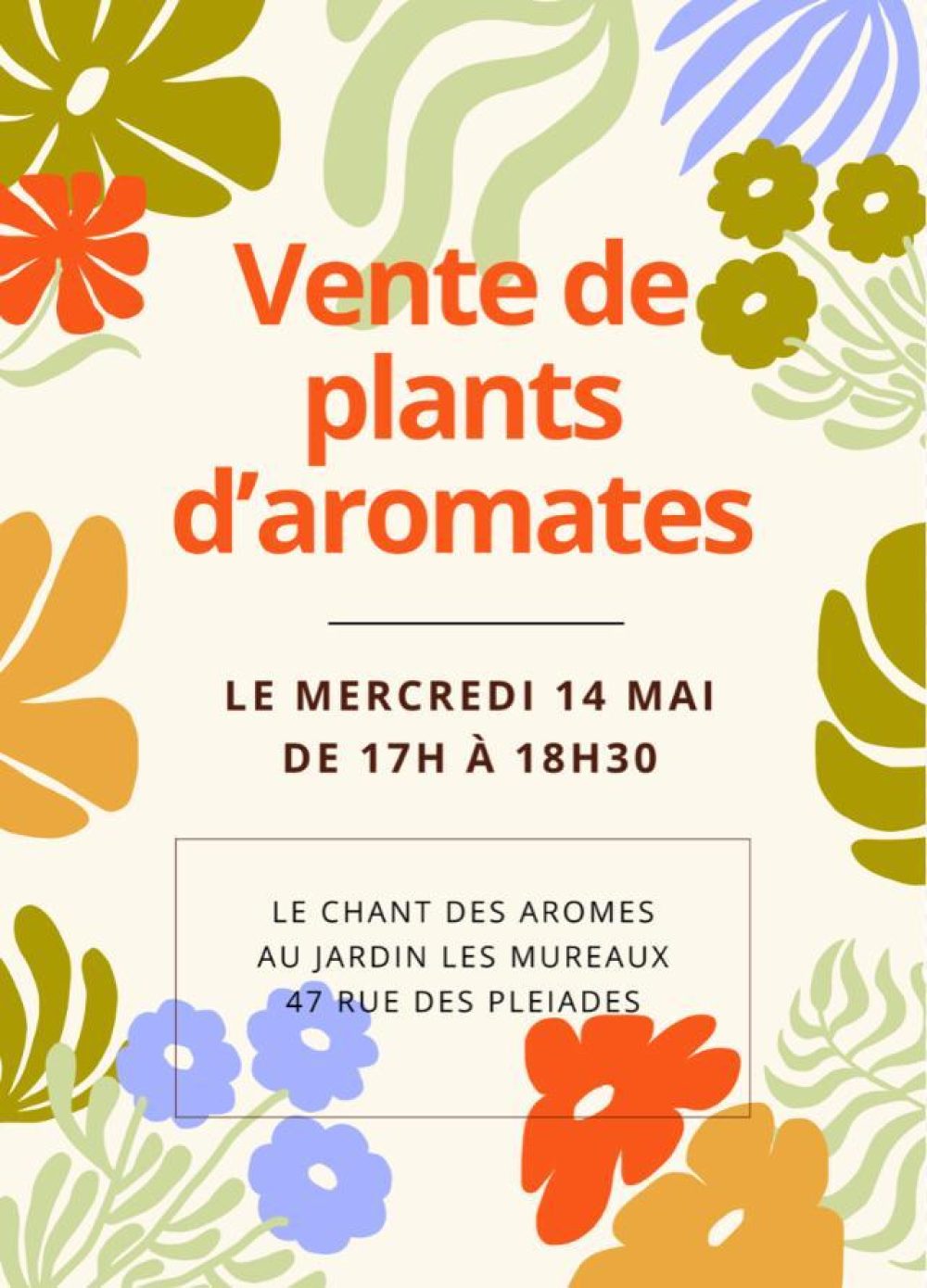 Rejoignez-nous pour une vente exceptionnelle de plants d’aromates : basilic pourpre, basilic citron, persil frisé, sauge officinale, hysope, estragon du Mexique, thé du jardin, agastache, camomille romaine… De quoi parfumer vos jardins et vos plats naturellement !