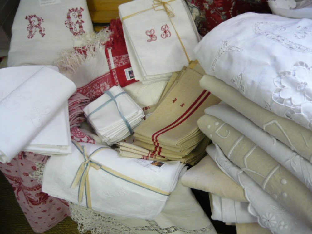 Un choix de linge ancien de maison : drap, nappe, torchon serviettes etc vous attend