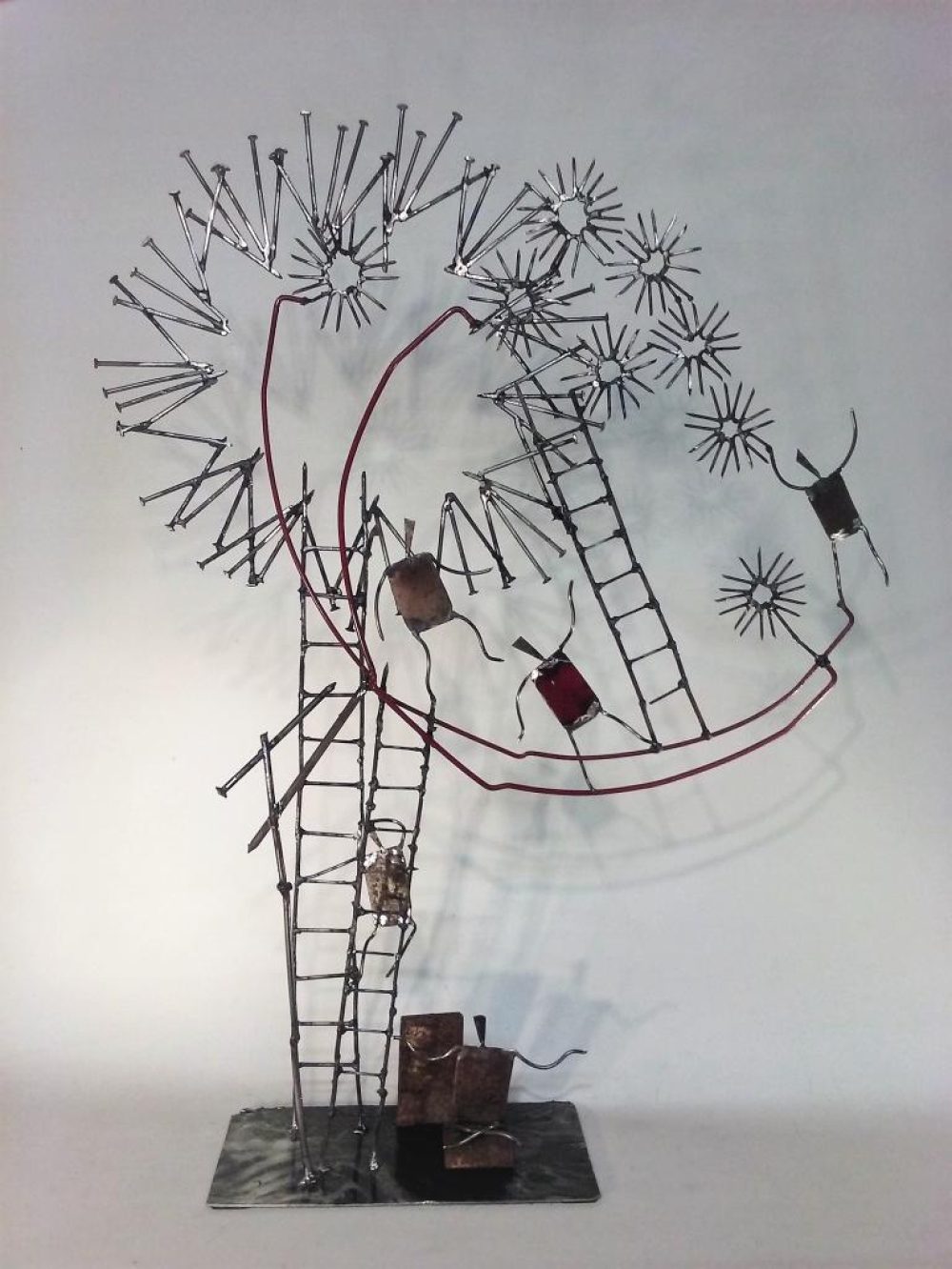 C’est la soudure à l’arc qui lui permet actuellement d’échafauder ces constructions à partir de clous, un matériau tout simple à combiner à l’infini, comme un jeu d’enfant !